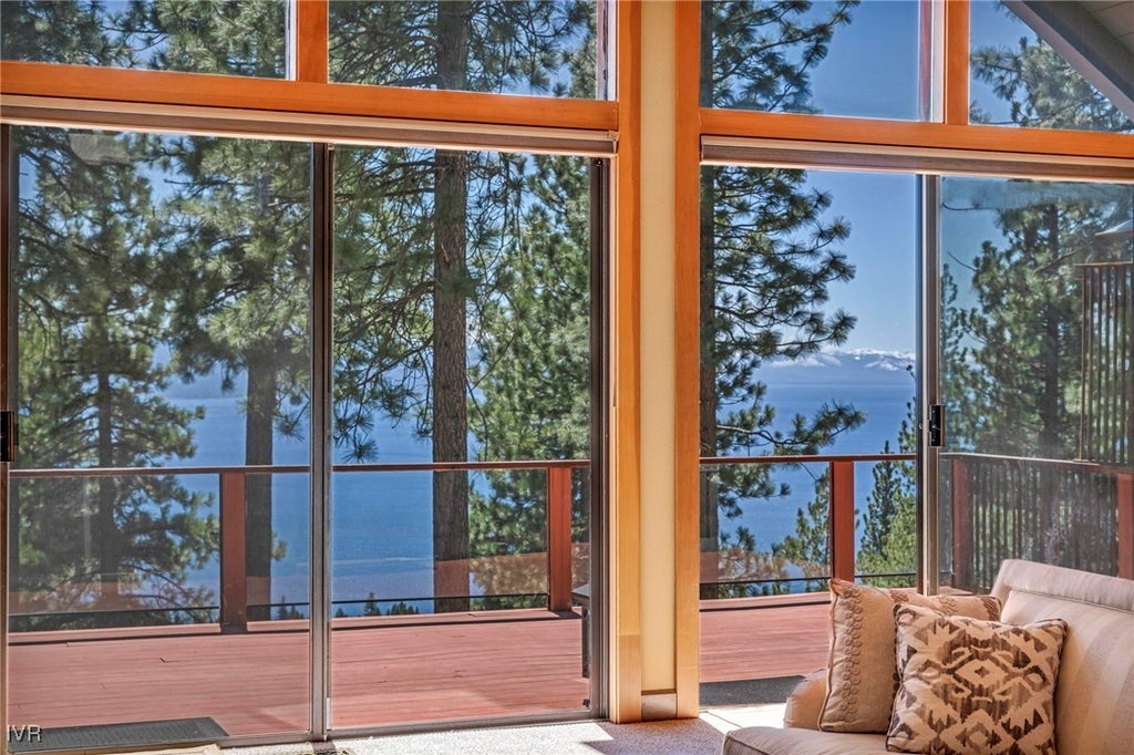 Breathtaking Lake Tahoe views from every floor! The top floor great room has an open plan and a grand deck all overlooking Lake Tahoe. The generous kitchen showcases solid wood cabinetry, granite counters, stainless steel appliances, bar seating, and walk-in pantry. The entry level offers a versatile open space with built-ins leading to the Primary Suite with walk-in closet, gas fireplace, tub and separate shower, plus more views of Lake Tahoe. An additional bedroom and bath complete this level. One floor down to the bonus room plus two additional bedrooms, a shared bath, and more views. The deck off the bonus room has a generous hot tub to enjoy the serenity of trees and blue waters. Plenty of storage, two furnaces, two water heaters, a recirculating hot water tank for quick hot water retrieval, wireless freeze alarms, cameras, a generator, bear resistant screen doors, heated driveway, and separate entrance to lower floor make this an easy living Lake Tahoe view home.