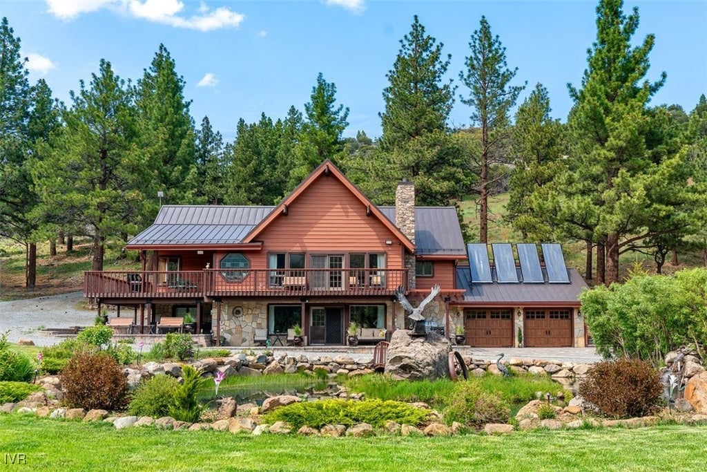 Welcome to Lone Eagle Ranch, an extraordinary off-grid estate tucked below Mt. Rose Summit, perfectly positioned between Reno and Lake Tahoe. This property blends unmatched luxury with sustainability, offering panoramic views, privacy, and self-sufficient living. Powered by a state-of-the-art solar system, the home provides seamless, eco-friendly comfort without compromise. Inside, soaring ceilings, expansive windows, and an open-concept design showcase the surrounding beauty, while the chef’s kitchen with stone countertops and abundant storage anchors the living and entertaining spaces. Outdoors, spacious decks and patios make starlit gatherings effortless, and a private pond adds tranquility reminiscent of Tahoe. A versatile barn/garage expands possibilities for hobbies, animals, and storage. Every detail—from smart home features to thoughtful landscaping—reflects pride of ownership. Ideal as a primary residence, retreat, or legacy estate. be sure Ask agent for property details list!