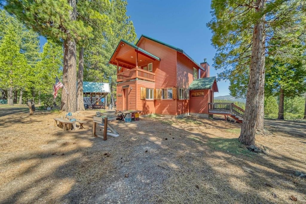Discover the perfect blend of serenity and adventure with this charming off-grid cabin nestled on just over 20 forested acres surrounded by forest service lands. This cozy mountain home offers a unique opportunity to escape the hustle and bustle of city life. Take a step inside the 1,688 sq.ft home to find beautiful open beamed vaulted ceilings, a wood burning fireplace and beautiful hickory cabinets in the kitchen. The kitchen also has a propane refrigerator, cookstove and large pantry. A full wall of windows in the great room not only highlight the magnificent outdoors but lets in just the right amount of natural light. The large loft bedroom provides plenty of sleeping space plus a private bath with a walk in shower. There is a murphy bed downstairs for additional sleeping area. Both entrances into the home have steel doors with double locks for extra security. Embrace off grid living with generator power, ensuring uninterrupted comfort and convenience. There is a 40' x 40' steel workshop built to withstand the elements, 3 RV hookups, water well and an oversized septic tank. The home was built with additional safety features such as a metal roof, Hardy Plank concrete siding, 4-foot perimeter block foundation and is surrounded by 5 water risers for additional fire protection. Breathtaking, unobstructed views of Mt. Penman and Mills Peak can be seen from most of the property. Surrounded by picturesque wilderness, outdoor enthusiasts will delight in the boundless opportunities for hiking and exploration right at their doorstep. Yet, with the convenience of being only 6 miles from Graeagle, this property strikes the perfect balance between seclusion and accessibility. During the winter months snowmobile, cross country ski, or snowshoe into your cozy mountain getaway! A year-round creek runs through the property. Experience the ultimate blend of tranquility, luxury, and sustainability in this enchanting haven in the forest - a place where every day feels like a retreat, and every moment is infused with the magic of nature. Don't miss out on this rare opportunity - schedule your showing today and make your off-grid dreams a reality! *** MINIMUM 48 NOTICE TO SEE IS REQUIRED DUE TO THE LOGISTICS OF SEEING THE PROPERTY ***