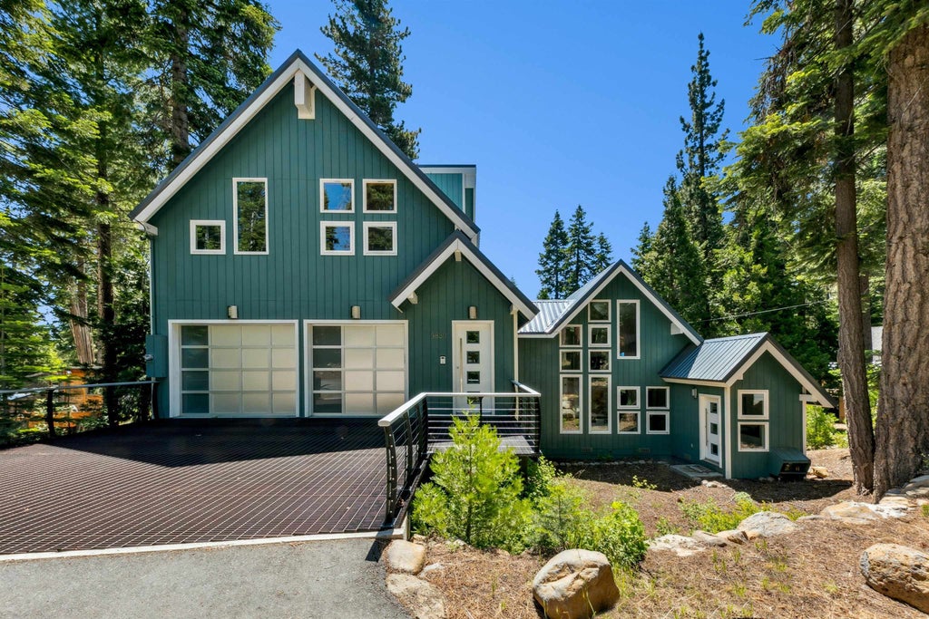 Nestled in the tranquil woods of Carnelian Bay, this newly remodeled 4,000 sq. ft. modern home blends European luxury and efficiency. This fully customized four-bedroom, four-bath home includes a fully equipped in-law unit, a spacious office (convertible to an ADU), an oversized game/exercise room, a loft, and two south-facing decks with lake views. The separate suite above the oversized and heated four-car garage offers guest privacy or rental income potential. Built for the mountains this home is low maintenance and boasts a steel-grate driveway, metal roof, high-efficiency insulation, radiant heated floors including in the showers, and thermostatic massage showers. The adjacent conservancy lot ensures lasting privacy. Just minutes from Lake Tahoe, world-class skiing, and Tahoe City’s dining and shopping, this property also offers optional HOA membership with private pier and buoy access.