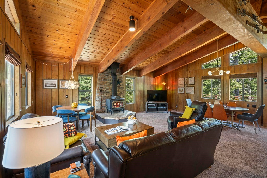 6210 Lark Drive is the kind of Tahoe cabin that still has a heartbeat—full of vintage charm, character around every corner, and just the right updates to make life easy. With three bedrooms and two bathrooms, the reverse floor plan places the main living area upstairs, where vaulted ceilings and big windows let the light pour in. This level features a full bathroom, new carpeting (2025), a kitchen with brand-new stainless steel appliances (2025), and a walk-in pantry that doubles as a wine bar or coffee nook. Front and back decks extend the living space outdoors—perfect for morning coffee or dinner under the trees. Your own winter tubing hill with a perfect slope for family fun all snow season. Downstairs on the entry level are all three bedrooms and a beautifully remodeled full bathroom (2024)—nicely tucked away for rest and retreat. Below that, the spacious unfinished lower level is currently used as a rec room, gear drop zone, and storage area. With its own separate entrance, dry wood storage inside, and even a workshop, it’s full of potential for whatever comes next. The home sits on a mostly level, sunny lot with a flat driveway that makes winter access easy. And it’s just five minutes from Homewood Ski Resort—so you can be on the slopes before the second cup of coffee. Located in Chamberlands, this property includes full membership to the Chambers Beach and Mountain Club & Rec Association: private beach, pool, tennis courts, seasonal shuttle to the lake, and snow removal for the driveway. Sold mostly furnished, so you can settle right in. Some homes just feel like Tahoe. This one gets it right.