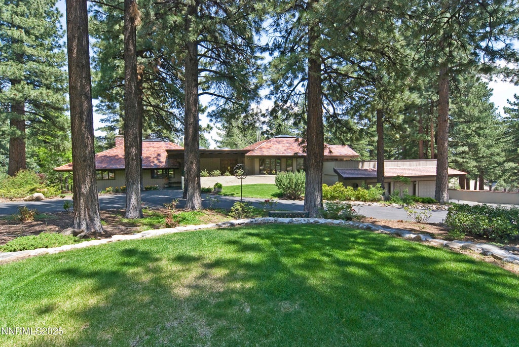 Nestled on a serene corner lot in Galena Forest, this Frank Loyd Wright inspired home is a rare architectural gem nestled on over an acre of lush landscape/forest.The home showcases natural materials such as wood beams that harmonize w/ the surrounding forest, creating a seamless indoor-outdoor connection. Expansive wood encased windows & doors, w/ open-plan living spaces invite abundant natural light & stunning views of the forest, while handcrafted built-ins & fireplaces add warmth & charm throughout., Main floor is just under 4000 sq ft. All bedrooms are en suites. Ground level has 1416 sq ft. and was previous used as a multi-room office (desks & bookcases stay or can be removed).Perfect In laws quarters (guest unit) Seller is pricing out sink for kitchenette, guest bath, and interior painting. This space is showing some virtually staged photos. Could also make a great game room, kids playroom, workout rm or theater room. Most of the Kitchen appliances are less than 1 year old, 2 on demand tankless water heaters w/ recirculating pump for instant hot water, & a water softening system. Wrap around deck & hot tub. Central vac with multiple attachments. View deck over garage and paver patio in back yard. 2 high efficient heaters for zone heating. Security system with fire and motion detectors. Ring Camera at front door. Outlets in center of great rm floor for floor lamps and projector screen. Washer/Dryer included. 10x 10 Skylights throughout. Freshly painted interior in main living area, primary bedroom & bath. Newly paved circular driveway with RV parking, new rain gutters, automatic sprinkler system, Seller home warranty in place. A/C and Furnace was replaced in 2022, the roof was replaced with concrete tile and the tankless hot water heaters were replaced in 2020.