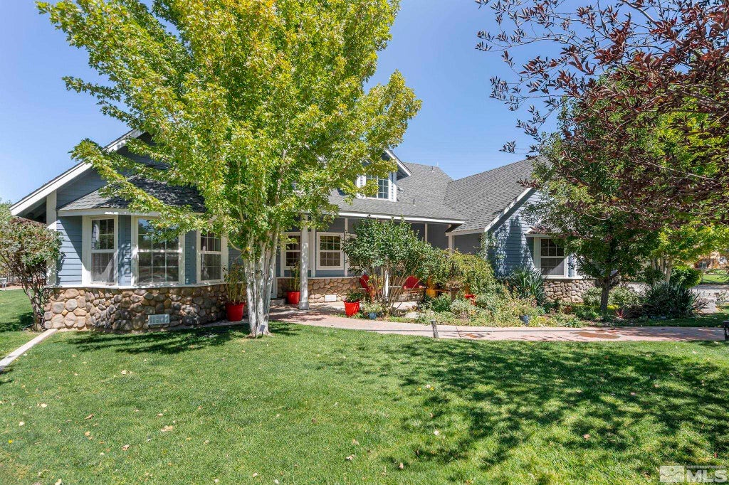 Perfectly situated on a full acre, this spacious 5-bedroom, 3-bathroom home offers the ideal blend of comfort, functionality, and outdoor living. Located just minutes from Carson City, Minden, Gardnerville, and historic Genoa, with Lake Tahoe only 30 minutes away, you're never far from skiing, hiking, or a day at the lake. Inside, you’ll find hardwood flooring and brand-new carpeting throughout., The main bedroom is conveniently located on the first floor for privacy , while the versatile den/office—separate from the home's total square footage—offers the perfect work-from-home setup or bonus room. Upstairs features two generously sized bedrooms, including one with a large walk-in closet, a full bathroom, and a spacious open area ideal for study or play. Built-in wall shelving provides extra space. Step outside to enjoy a beautifully landscaped backyard designed for entertaining, complete with a large patio, hot tub, and deck—perfect for BBQs and gatherings. The fully fenced yard includes raised garden beds, a greenhouse, chicken coop, and a large shed. There’s even room to expand with a shop, horse facilities, or additional gardens. Additional highlights: Oversized 2-car garage Circular driveway Private well & septic Located near BLM land for endless outdoor recreation Horse-friendly zoning This is more than just a house—it’s a lifestyle. Don’t miss this rare opportunity to own a versatile, move-in-ready home in one of Northern Nevada’s most desirable areas!