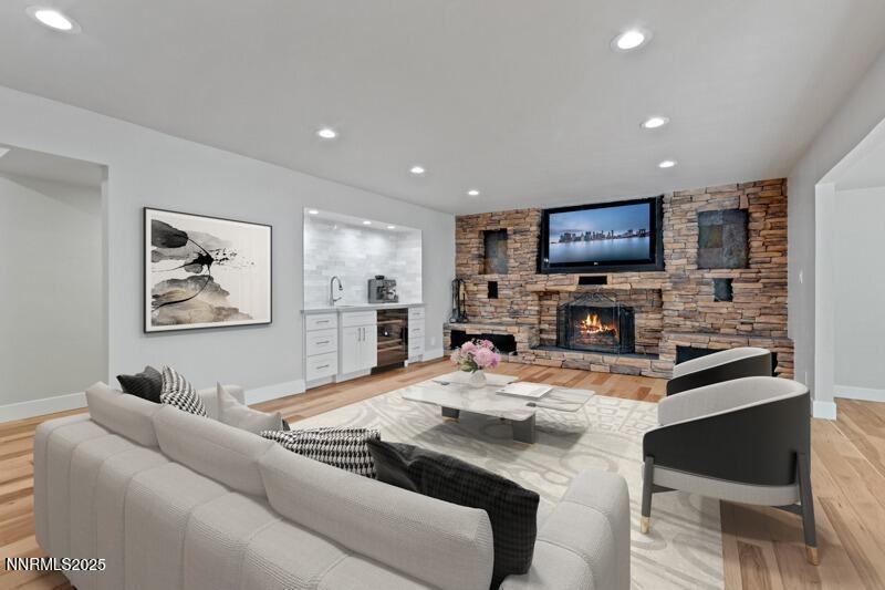 Welcome to this beautifully remodeled home in the heart of Old Southwest Reno. This 3,487 sq ft split-level residence offers 4 bedrooms, 2 full bathrooms, and 2 half bathrooms. Throughout the home, you'll find bright and airy white oak flooring and white shaker cabinetry that enhances the open, modern feel. The updated kitchen features all-new SMART appliances, quartz countertops, and a spacious walk-in butler's pantry—ideal for storage and prep. A new slider off the kitchen opens to a shaded outdoor sitting area, perfect for morning coffee or dining al fresco. Lots of recessed lighting and new paint, texture, and painted trim throughout. A large family room with a wet bar and mini fridge provides an excellent space for entertaining. Upstairs is the primary suite, that offers abundant natural light and direct access to a private patio with filtered city views through the mature trees. 3 other large bedrooms with an oversized bathroom is a plus. Lowest level offers the finished basement. It offers flexible space for storage, a home gym, or hobby area. This additional 552 sf is not included in the original footage and can be accessed by its private entrance. Outside, the front yard greets you with a tranquil water feature and pond that set a peaceful tone. Wonderful full trees shade the home. A third acre allows RV parking and a large grassy yard. Don't miss your chance to tour this stunning home—schedule your showing today!