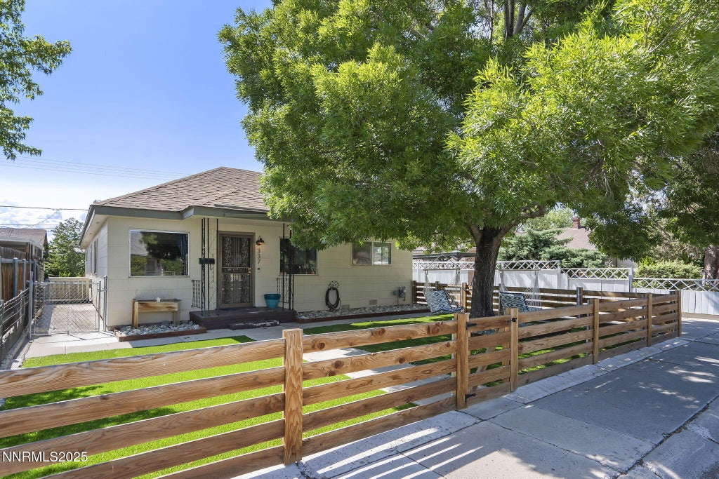BACK ON THE MARKET. SELLER HAS PUT A BRAND NEW ROOF ON!! LOOKS GREAT .Well maintained unique move in ready home on quiet street in Sparks boasts an oversized 900 sq. ft. garage with 9 ft. door perfect for any hobby you may have. The kitchen has been updated to include a dishwasher and breakfast bar/island. There is a mud room/laundry room off the kitchen with access to the backyard and Primary bedroom. The primary bedroom has a full bath with stand up shower. The current owner is using the addition as a Primary Bedroom but could be a family room or game room. The other two bedrooms are off the living room and there is a full bath. The property is landscaped with artificial grass both front and back. It is fully fenced. Schools and shopping are in walking distance along with a park. Come see this one of a kind bungalow and make it your new home. ( Refrigerator, W/D and hot tub are not included in the price. )