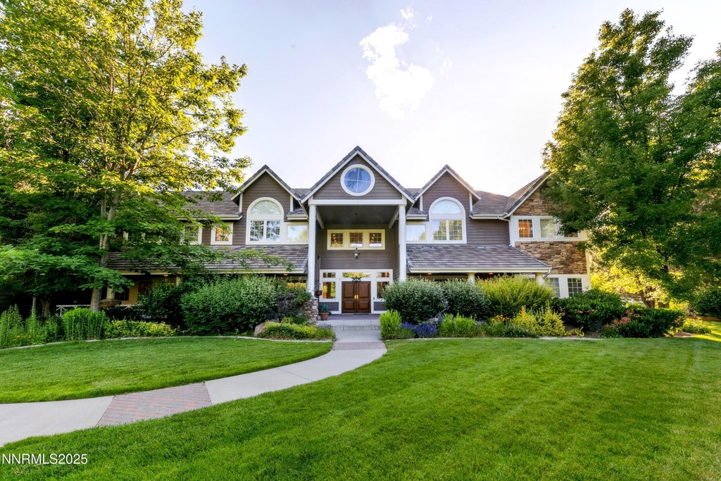 Set on a private 2.137-acre parcel in Reno's established Country Estates neighborhood, this custom residence offers 6,768 square feet of thoughtfully designed living space where refined comfort meets timeless appeal. Mature trees and beautifully landscaped grounds provide a serene, park-like setting that feels both secluded and well connected to the best of south Reno. Inside, soaring ceilings, abundant natural light, and clean architectural lines create a sense of openness and ease. The heart of the home is a well-appointed kitchen with quartz countertops, a generous center island, and a walk-in pantry—flowing seamlessly into the spacious living and dining areas designed for both everyday comfort and memorable entertaining. With six bedrooms—four featuring en suite bathrooms and two sharing a Jack & Jill—the layout offers flexibility for a variety of lifestyles. A seventh bedroom is currently used as a theater room, offering additional versatility. The main-level primary suite is a true retreat, complete with a spa-inspired bath, dual vanities, a soaking tub, steam shower, private water closet, and an expansive walk-in closet. Additional features include two half baths (one on each level), two laundry rooms (upstairs and downstairs, with an extra refrigerator), front and back staircases, an exercise room, and a bonus room (not included in the square footage; buyers to verify). Outdoors, enjoy the expansive lawn, mature landscaping, and a covered patio ideal for alfresco dining, peaceful mornings, and relaxed gatherings. A spacious three-car garage and ample storage complete the package. This rare offering combines privacy, scale, and timeless architecture with convenient access to shopping, trails, and I-580—creating an exceptional lifestyle opportunity in one of Reno's most enduring neighborhoods.