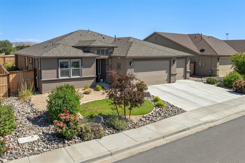 Previous Model and an extremely high demand floorplan. You'll find this absolutely beautiful, immaculate & well-maintained home has been loved and shows pride of ownership from the moment you enter. The oversized great room offers a fireplace, high ceilings, large windows with shutters, giving natural light throughout. The kitchen features an abundance of alder wood cabinetry which includes roll out shelving, beautiful granite countertops with a neutral stone tile backsplash, a large pantry plus an exceptionally sized island for a bakers dream or the entertainer's delight. The large primary bedroom also features an organized walk-in closet with en-suite that has a sliding barn door for privacy featuring a walk-in shower, separate garden tub and dual sinks. There are 3 additional oversized rooms, 1 has its own hall bathroom and includes a shower/tub combo. The other 2 bedrooms are situated ideally next to a full bath with a walk-in shower, plus a linen closet and are located on the opposite side of the home. All rooms include a ceiling fan plus lights with a dimmer switch and an automatic sensor plus remote operation. The laundry room includes upper/lower cabinets, a deep sink and plenty of counter space. The finished 3-car garage offers plenty of cabinet space for tons of storage and all your tools. The garage is 23'6" deep with 8' insulated garage doors with quiet open/close feature, along with man door for access to a paver walk that leads to the fully landscaped backyard. Enjoy the covered patio with a gas line stubbed for your BBQ!