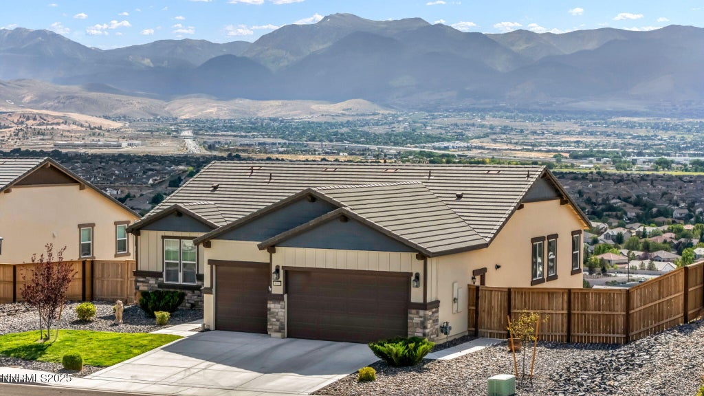 Views, views and more! Welcome home to 10591 Claim Jumper set on the hillside of Damonte Ranch in Reno, NV above Damonte Ranch High School. If you're seeking a picturesque retreat come enjoy the expansive Mountain, Valley and City Views that one never tires of! You won't want to leave. The main level includes the Kitchen, Great room, Primary bedroom, additional bedroom (or office). The home's interior is impressive with lot's of natural light and views from every angle. The spacious kitchen is complete with a large island, double oven, and open concept living space. There is an electric fireplace (that is included) that has changing light color flames. Downstairs is the walk out daylight basement great for gatherings, includes a second suite and family room with mini fridge, wet bar, microwave great for entertaining or multi generational living. Other features include water softener, iWave-Self Cleaning Ionization Air cleaner and newer dishwasher. There is adequate space for RV access or extra parking on the garage side for anyone wanting to have this amenity. Backyard is an open campus to design your landscaping. Please be aware that there is a Ring doorbell (you may be monitored) Ring doorbell stays.