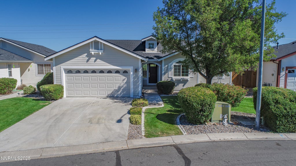 All the hard work has been done for you in this immaculate in-town home that backs up to beautiful pasture land with unobstructed views of the Sierra Nevada and Pinenut mountain ranges. All new carpet, interior and exterior paint and new roof installed in 2025. Granite countertops, GE Café oven/range, Bosch dishwasher and a single-bowl stainless steel sink adorn the kitchen. Low maintenance, single-level living with artificial turf and a paver patio in the back yard and the HOA maintains the front landscaping. There is also a pad and electrical disconnect (just needs breakers) for a hot tub in the rear. Additional features include built-in speakers in the living room; skylight in the entryway, gas and electric dryer hookups