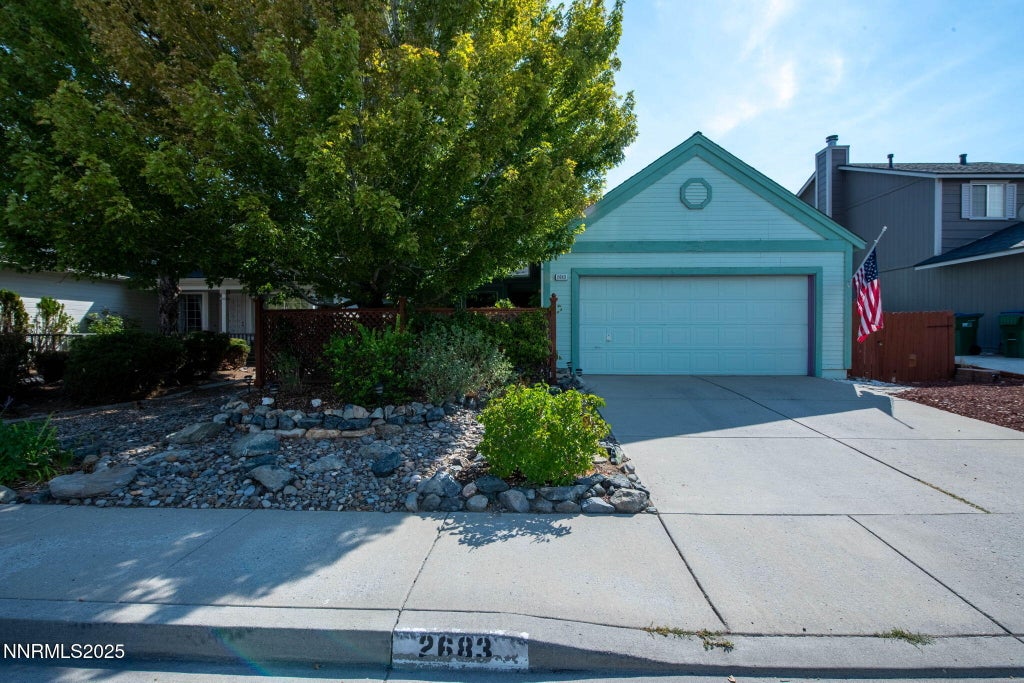 Step into serenity, where the true gem of this home lies both inside and out. In the back, a lush private patio garden awaits, wrapped in vibrant wisteria and mature grapevines that create a natural canopy of shade and beauty. Whether you're entertaining friends, enjoying an alfresco meal, or sipping morning coffee, this garden retreat offers a rare blend of tranquility and charm. The front of the home welcomes you with a privacy-fenced courtyard gathering space, perfect for relaxing or hosting neighbors. Inside, the single-level layout offers 1,398 sq. ft. of living space with 3 bedrooms and 2 baths, anchored by a cozy fireplace that adds warmth and character. A new water heater installed in 2023 provides added peace of mind. The garage has been partially converted to include an un-permitted bonus room—ideal for hobbies, a home gym, or an office. Upon buyer's request, seller agrees to remove bonus room in garage prior to closing, at seller's cost. Convenient to schools, shopping, and Carson City amenities, this home offers the perfect balance of indoor comfort and outdoor living, with versatile spaces designed to fit your lifestyle.