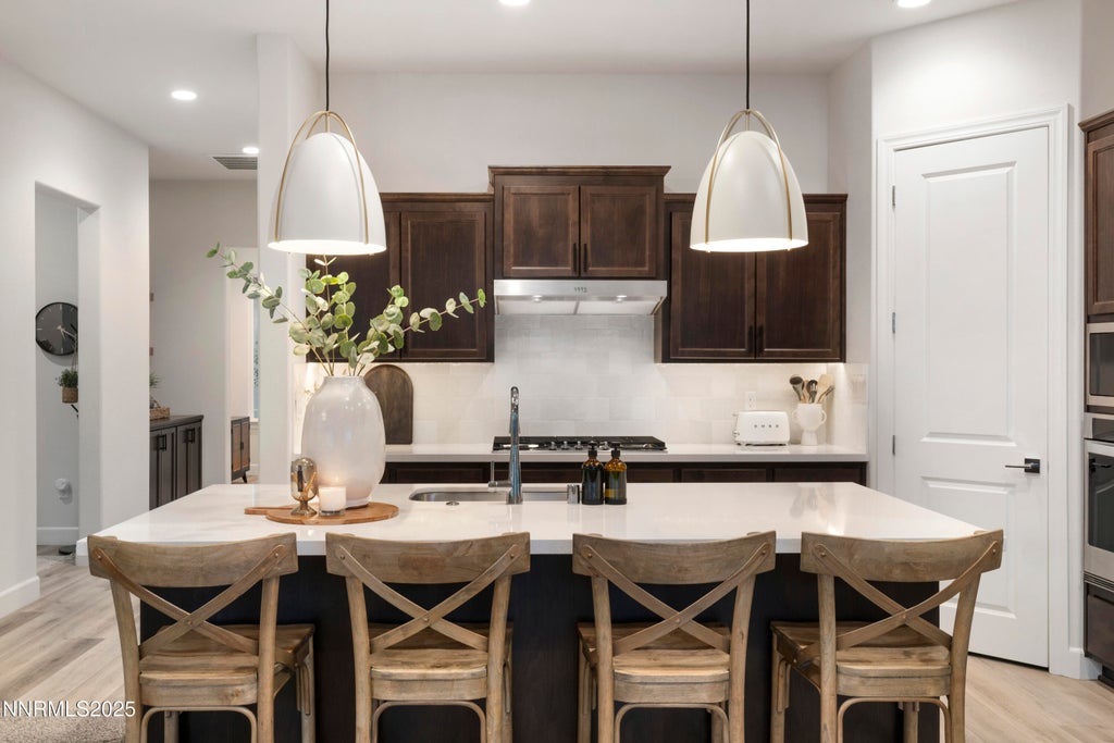 With a designer's eye, this luxury home on a single level showcases thoughtful upgrades throughout, including a brand-new designer backsplash, custom mantel, elegant tile framing of the cozy gas fireplace, and new light fixtures. High-end window coverings add both privacy and style, while expansive windows bring in natural light. Energy-conscious features include a tankless water heater and an EV charger outlet. Outdoors, the fenced yard creates a private retreat, perfect for relaxing or entertaining. With its refined finishes, practical enhancements, and move-in ready appeal, this home offers the perfect balance of elegance and everyday ease.